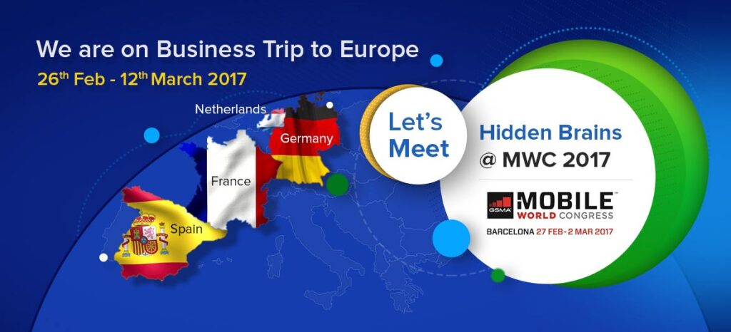 The Hidden Brains team is on its way to attend the mega event of Mobile World Congress (MWC) to be held in Barcelona, Spain from 27th February to 2nd March 2017. Organized by GSMA, this is the world’s largest gathering for the mobile industry. Hidden Brains is proud to be a part of MWC which will witness visitors from all over the world including mobile tech innovators and technology giants.