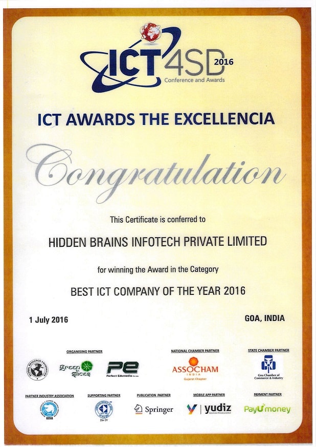 Return to Hidden Brains – ICT4SD – 2016 Certificate