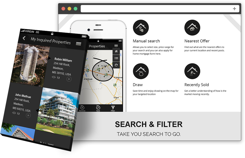 Users can conduct manual search for the properties or find the nearest offers based on the current location. The app also has a feature allow the users draw on the map for the targeted location. View recently sold properties also.