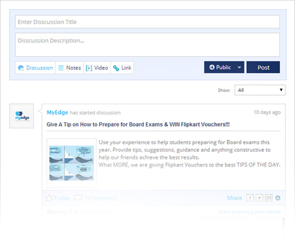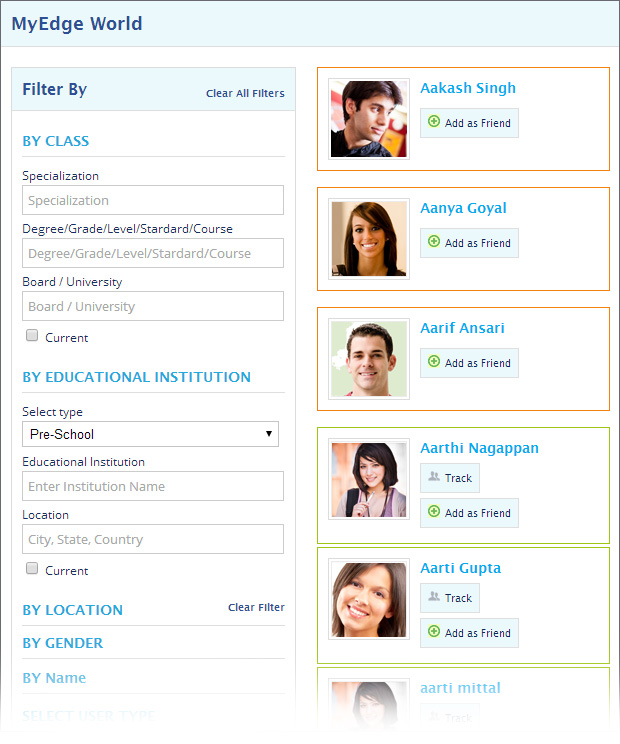 Different types filters to find the users on Myedge. Get the details about the members and add them as friends. Students, parents and teachers can exchange ideas and thoughts by connecting with eachother. The students can learn better at Myedge.