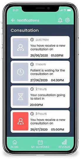 Doctor and Patient will receive appointment reminder notification before the appointment schedule so that you don't miss the appointment.